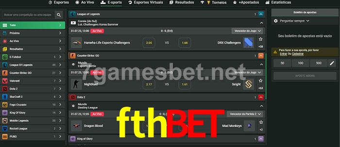 O fthbet oferece uma grande seleção de opções de apostas em e-sports com probabilidades competitivas